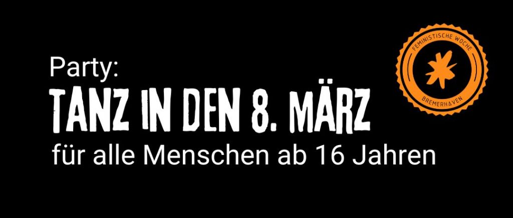 Wir wollen mit euch feiern! Beim Tanz in den 8. März geht es darum, einen gemeinsamen Raum zu schaffen, in dem getanzt, gefeiert und zusammengekommen werden kann. Der Abend ist offen für alle Menschen ab 16 Jahren und soll einen respektvollen, solidarischen Rahmen bieten.
