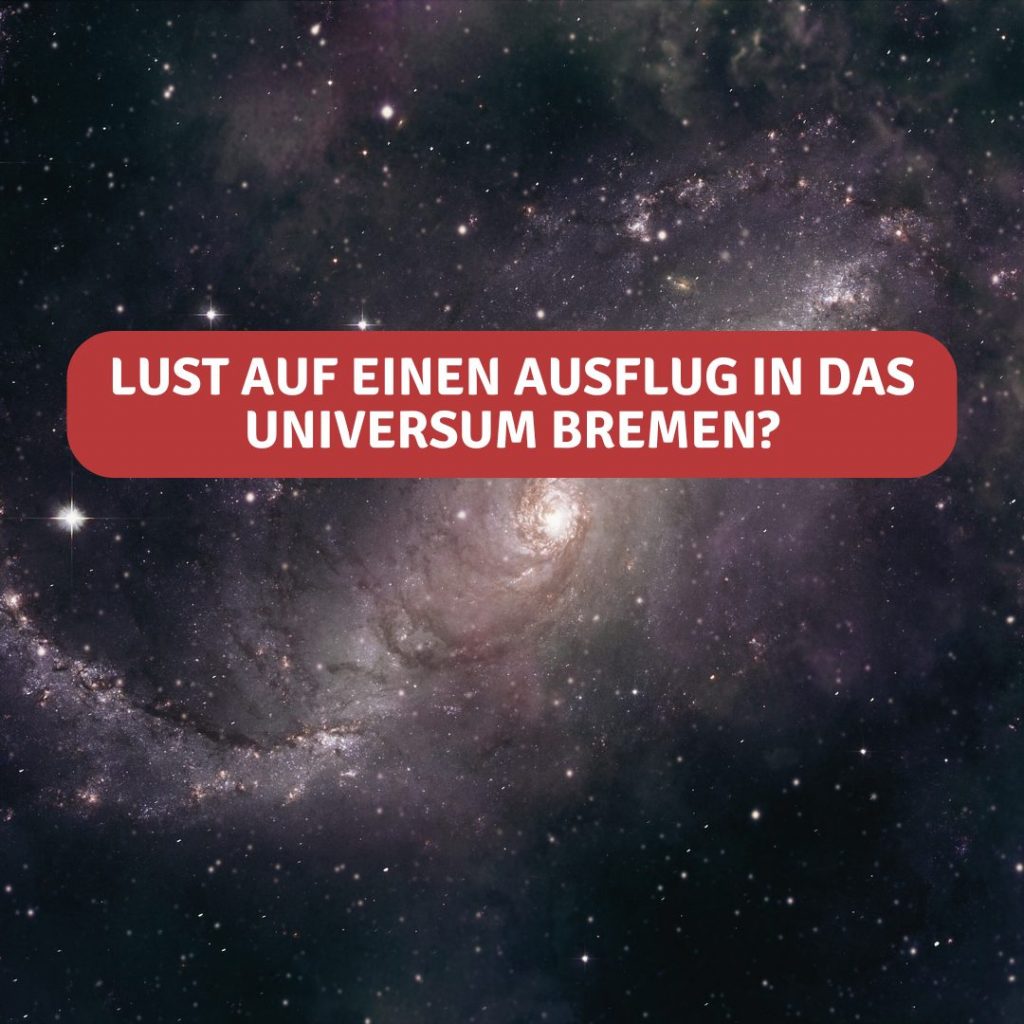 Wir fahren am 08.04 in das Universum in Bremen, ein interaktives Museum über Technik, Mensch und Natur. Wir werden Essen und Trinken mitnehmen, nehmt also einen Rucksack mit, um eure Verpflegung zu tragen. Wir freuen uns auf euch!