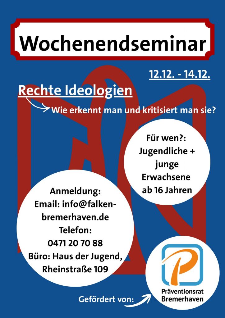 Wir veranstalten ein Wochenendseminar zum Thema: Rechte Ideologien – Wie erkennt man und kritisiert man sie?